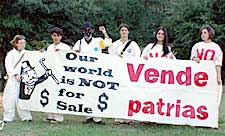 About 100 people took part in a spirited protest against the proposed Central America Free Trade Agreement in Houston on Tuesday, October 21. [