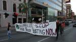 More than a dozen people marched in the streets of New Orleans Sunday evening with a “Starbucks Stop Your Union Busting Now!” banner in solidarity with Starbucks baristas across the nation. At the end of the action, police unlawfully arrested one protester for allegedly "interfering" with officers who were detaining a fellow demonstrator without cause.